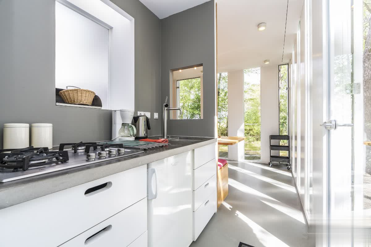 Welcome to our unique tiny house, hidden in a private forest on the outskirts of the charming Frisian village of Noordwolde. This modern accommodation is ideal for peace seekers and nature lovers. In the summer, enjoy your spacious private garden with seating area, a veranda and a hammock among the trees. In winter, you can sit comfortably inside by the wood-burning stove, which heats the room in no time. The tiny house is compact but equipped with every comfort!
