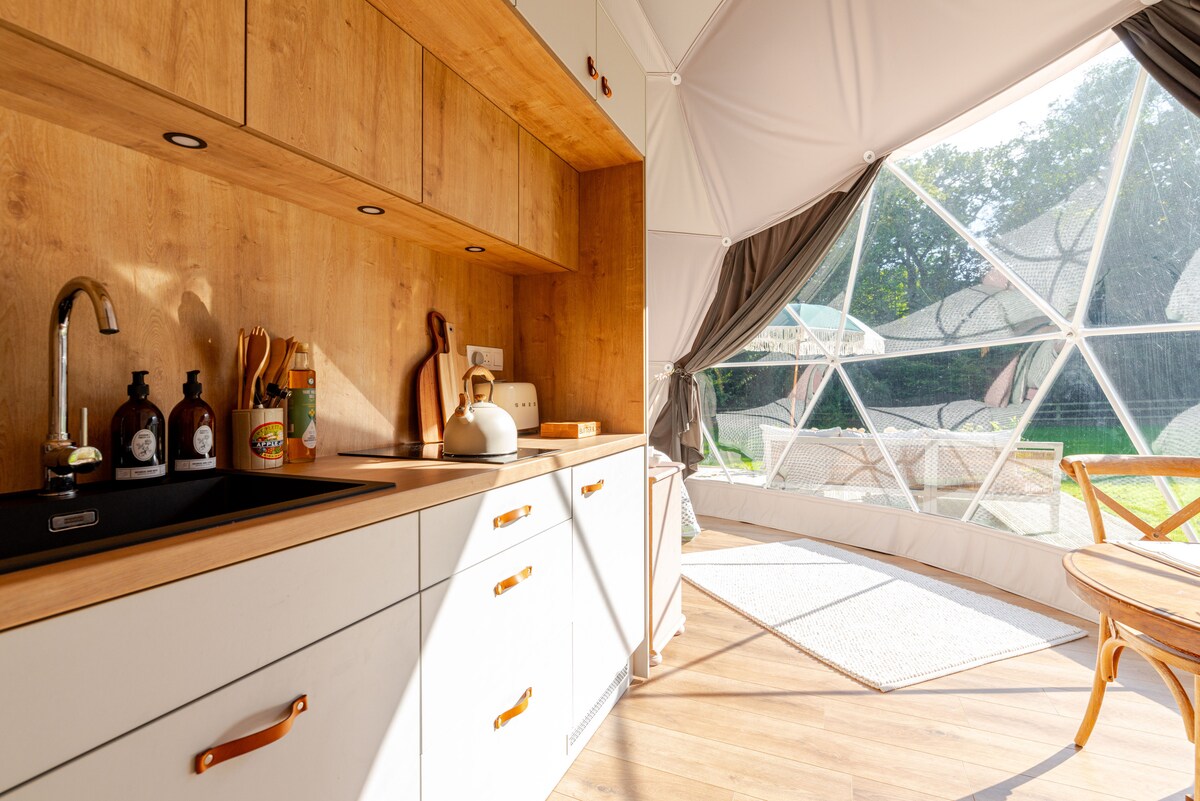 Nestled in the trees with stunning views down into a hidden, valley. Binoculars are provided to enjoy the Barn Owls, Kites, deer, foxes, badgers, rabbits, hares and squirrels that inhabit the valley. The all wood lodges have been hand built by local craftsmen; the fixtures, fittings, and beds are made from a specific species of 'wanet edged' wood. A fully fitted kitchen, mood lighting and a wood burning stove complete the cabin-in-the-woods romance of these gorgeous luxury hideaways.