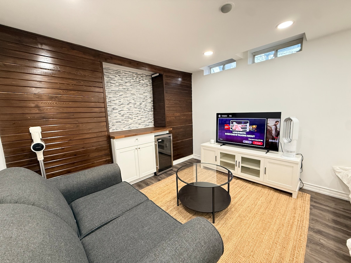 Unwind in our 2BR basement haven, a stylish retreat with immaculate interiors and ample space. Enjoy the convenience of a separate entrance in a family-friendly neighborhood, centrally located near grocery shops, gas stations, and Costco. Fully furnished with modern appliances, this chic apartment offers a perfect blend of comfort and style. Relax in the spacious living areas, equipped with all the amenities you need for a seamless stay. Book now for a memorable experience in this modern oasis!