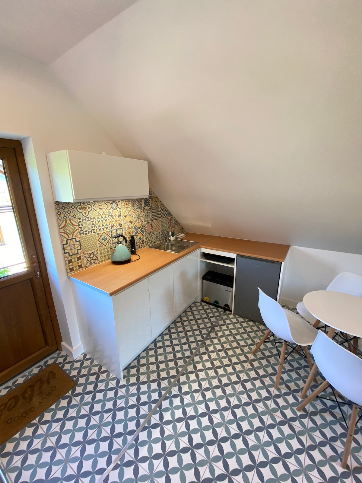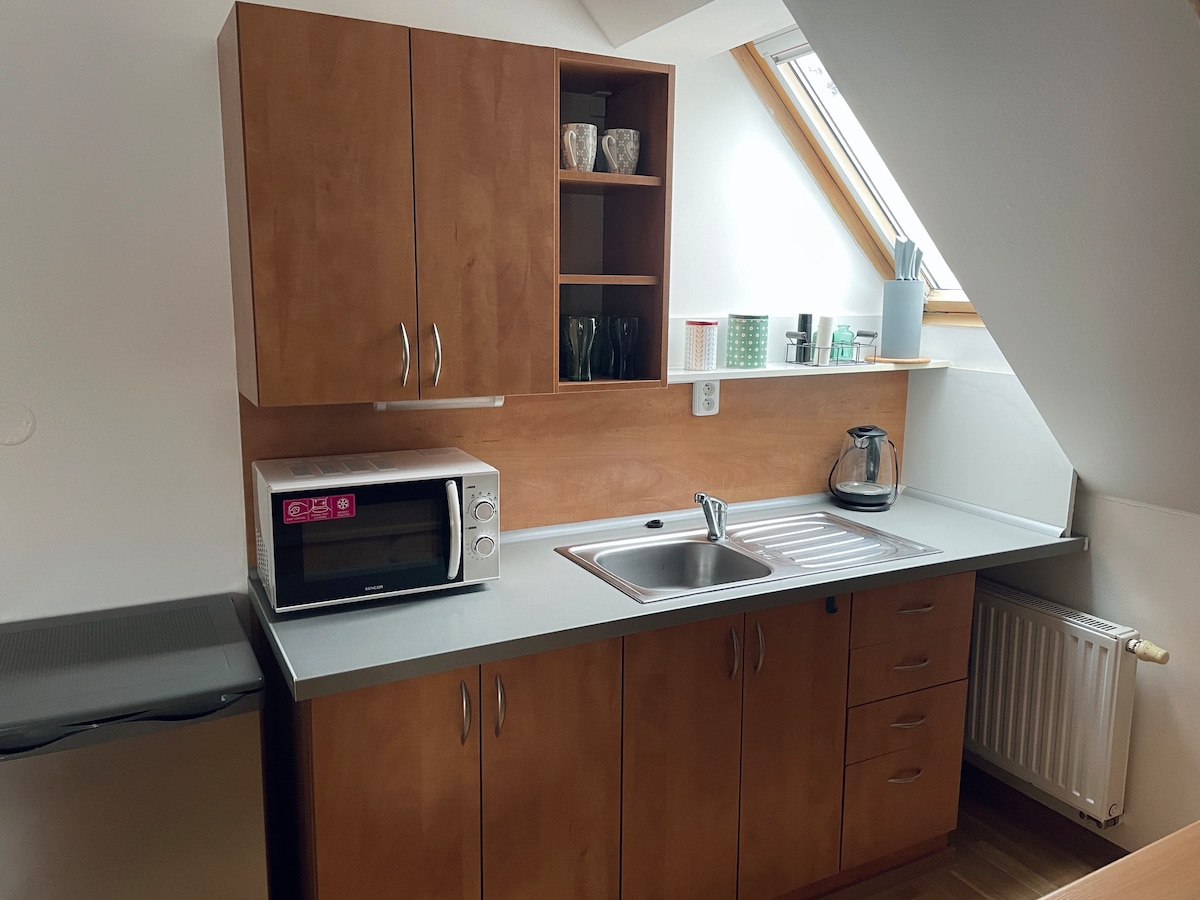 Nový klimatizovaný apartmán v podkroví nabízí dvě samostatná lůžka a rozkládací sedačku, která poskytuje další místo na spaní. Součástí je vybavená kuchyně, koupelna se sprchou, pračkou, fénem a žehličkou. Celý apartmán je pokrytý vysokorychlostní wifi. K dispozici máte plochou televizi. V blízkosti se nachází restaurace Svatoboj, potraviny, vyhledávaná cyklostezka s krásnou přírodou a jedno z nejlepších brněnských wellness - 4comfort.