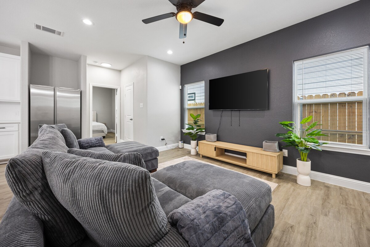 The conveniences of home and the luxury of a hotel. Whether you are here for work, visiting family, taking a vacation, or needing to be near Dallas, our goal is for you to have the best Airbnb experience ever! Near downtown Ennis and 45 minutes to DFW, this new one-bedroom guest cottage includes a fully equipped kitchen and bathroom, living room with smart TV, office space, laundry room, and attached garage! With full use of seasonal pool, jacuzzi, gym, grill, fire pit, and outdoor amenities!