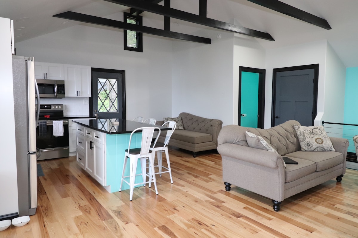 Looking for a mountain getaway? Come escape to our Poconos cottage, which seamlessly blends modern comfort and rustic charm in a private, wooded setting. Explore nearby hiking trails, indulge in local eateries, ski, fish, boat, or just embrace the tranquility of nature while sitting by the fire! You'll also enjoy fast Wi-Fi, A/C, and an indoor gel fuel fireplace.