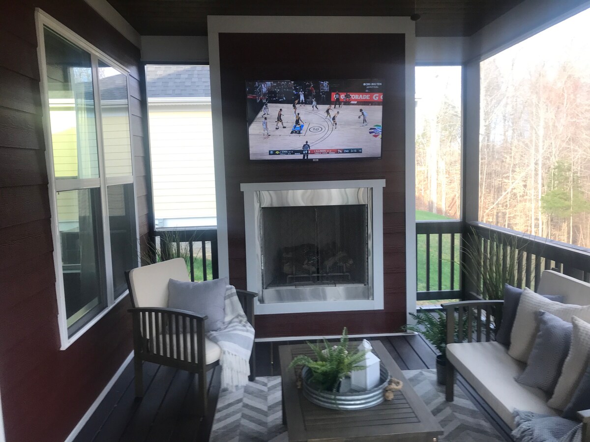 Perfect family friendly get-away at Tims Ford Lake. The cottage is located on a beautiful, completely wooded lot. You have access to Holiday Landing Marina via a subdivision golf cart path. Whether you want to go boating on the lake, hike at the nearby Tims Ford State Park, or just get together with family and friends, look no further! This large open concept, cozy, spacious, 3-level home is all you will need. Brand new furnishings and mattresses! Our space also includes 5 large 4K ROKU TVs.