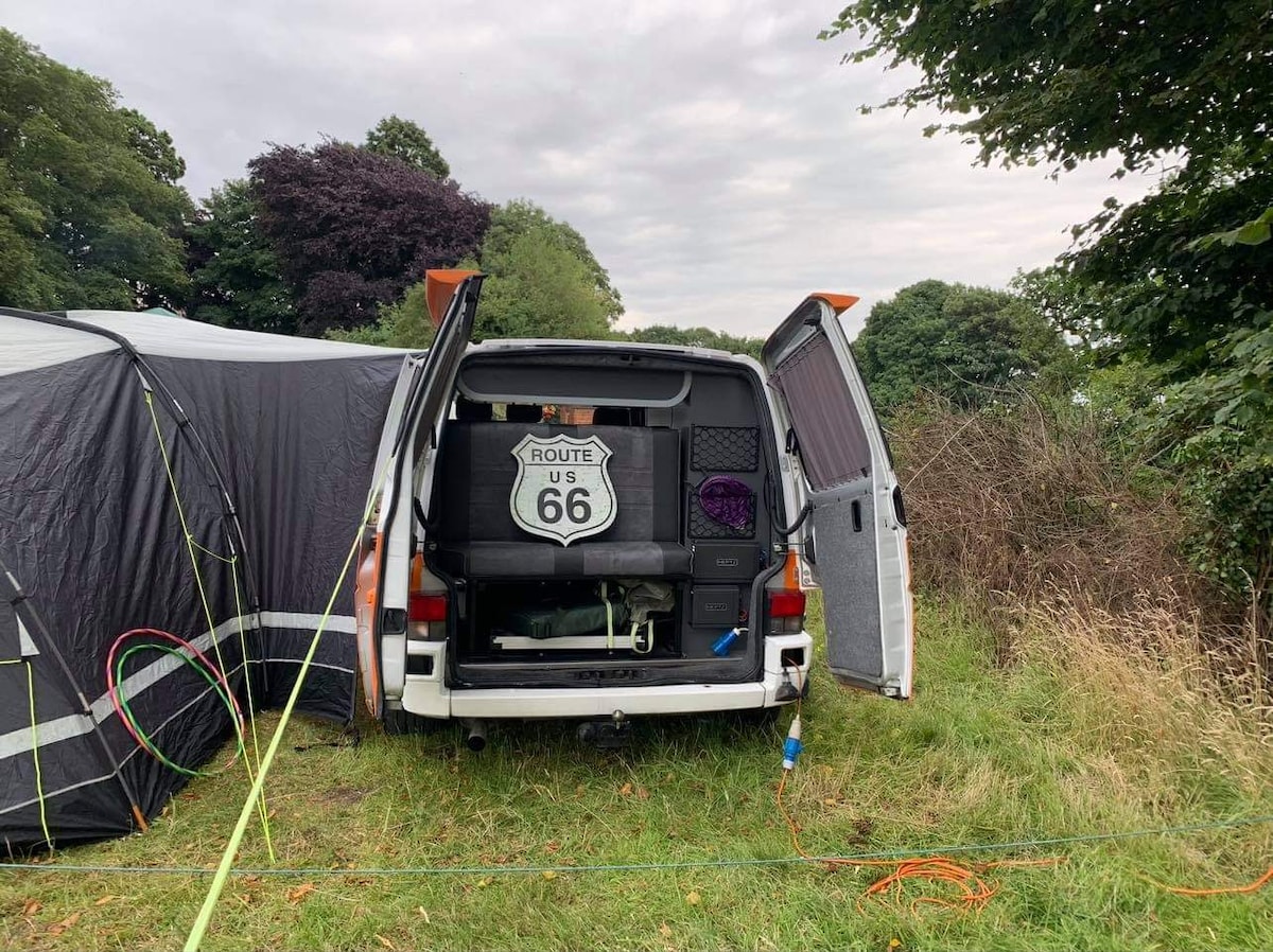 Cosy 2 bed campervan with awning and firepit.