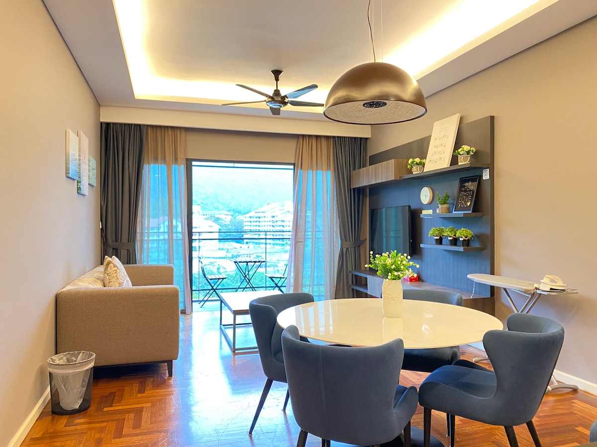 Retreat to our serene, family-friendly retreat nestled on the 23rd floor of Windmill Upon Hill Residence in Genting Permai, Genting Highlands. Enjoy the refreshing, cool breeze and unwind in a peaceful setting. Our spacious unit boasts a private balcony with breathtaking, uninterrupted views of the majestic mountain valley, offering the perfect backdrop for a relaxing getaway. Whether you're seeking tranquility or adventure, our unit promises an unforgettable stay for the whole family.