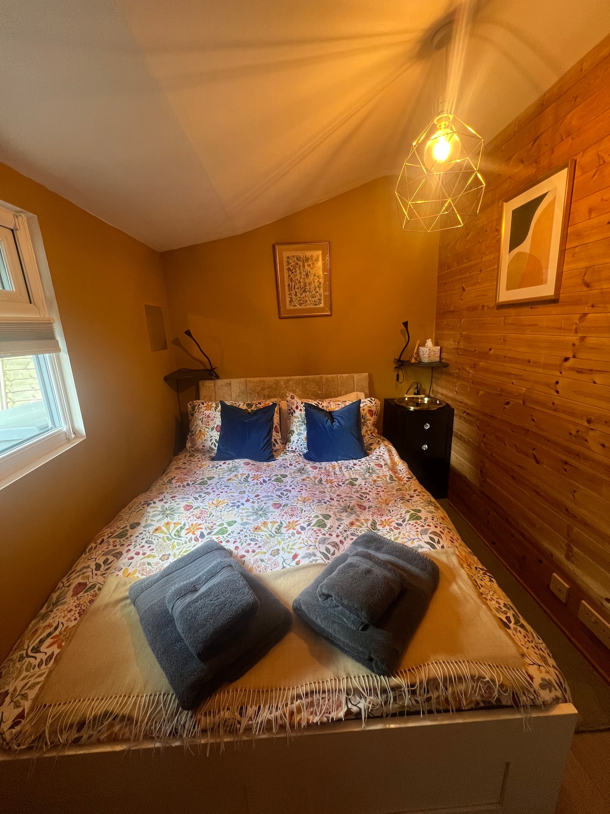 This cosy luxurious self contained oak framed cabin offers the perfect peaceful setting for a relaxing getaway. Listen out and you may hear the owls at night. Backing onto the National Trust Ashridge Forest, perfect for outdoor lovers yet equally suitable for a romantic night in. 1.5 miles away, the popular market town of Berkhamsted, offering atmospheric pubs and bars for a special night out. The cabin offers cozy spacious living with King size bed on a mezzanine floor! STRICT NO PET POLICY!