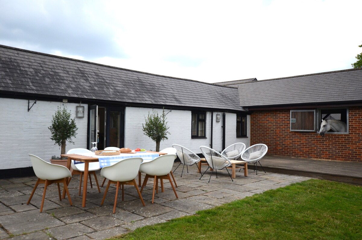 Unique newly converted small barn, bright, light and self contained. Sleeps 3 adults or 2 adults and 2 children (or 2 small adults) due to restricted height space in loft. Large gravel drive behind big, wooden gates for safe and easy parking. An assortment of Teas, coffee & biscuits. Breakfast is not provided. Situated down a country lane, within the garden of the house, walking distance to pubs and restaurants. Near Lapland UK, Legoland, Ascot, Windsor, Train stations to London and Reading