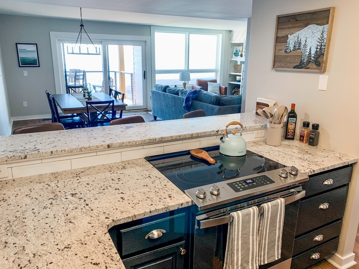 Welcome to our recently renovated luxury condo in the sky! Perched on the edge of the Wintergreen ridgeline, we are just a stone’s throw from nature’s bounty. Our condo offers the perfect blend of relaxation and access to recreation. Hit the ski slopes, take a hike, or explore the bountiful brew and wine scene and then come enjoy the view. The horizon is 75 miles distant from our balcony on a clear day! We love hosting families with kids or couples coming to enjoy all that Wintergreen offers!