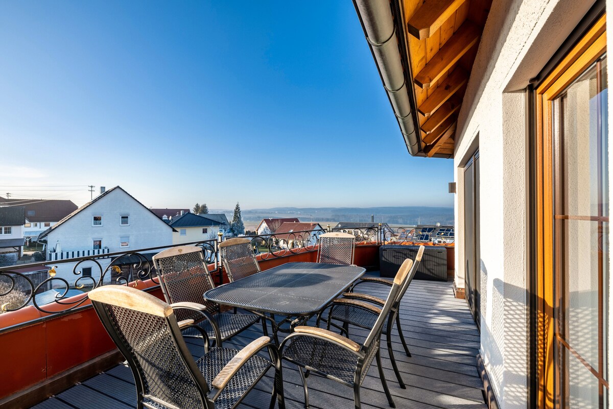 Please read IMPORTANT NOTES ABOUT THE KITCHENETTE (under: other relevant information!) Our guest room is on the second floor of our country house at the end of a dead end road. After an excursion on the Swabian mountains, you can slow down and enjoy the panoramic view of the mountains from the balcony. Our guest room can be used by two adults and up to two smaller children (up to 12 years old). We can provide a folding bed and a crib free of charge upon request
