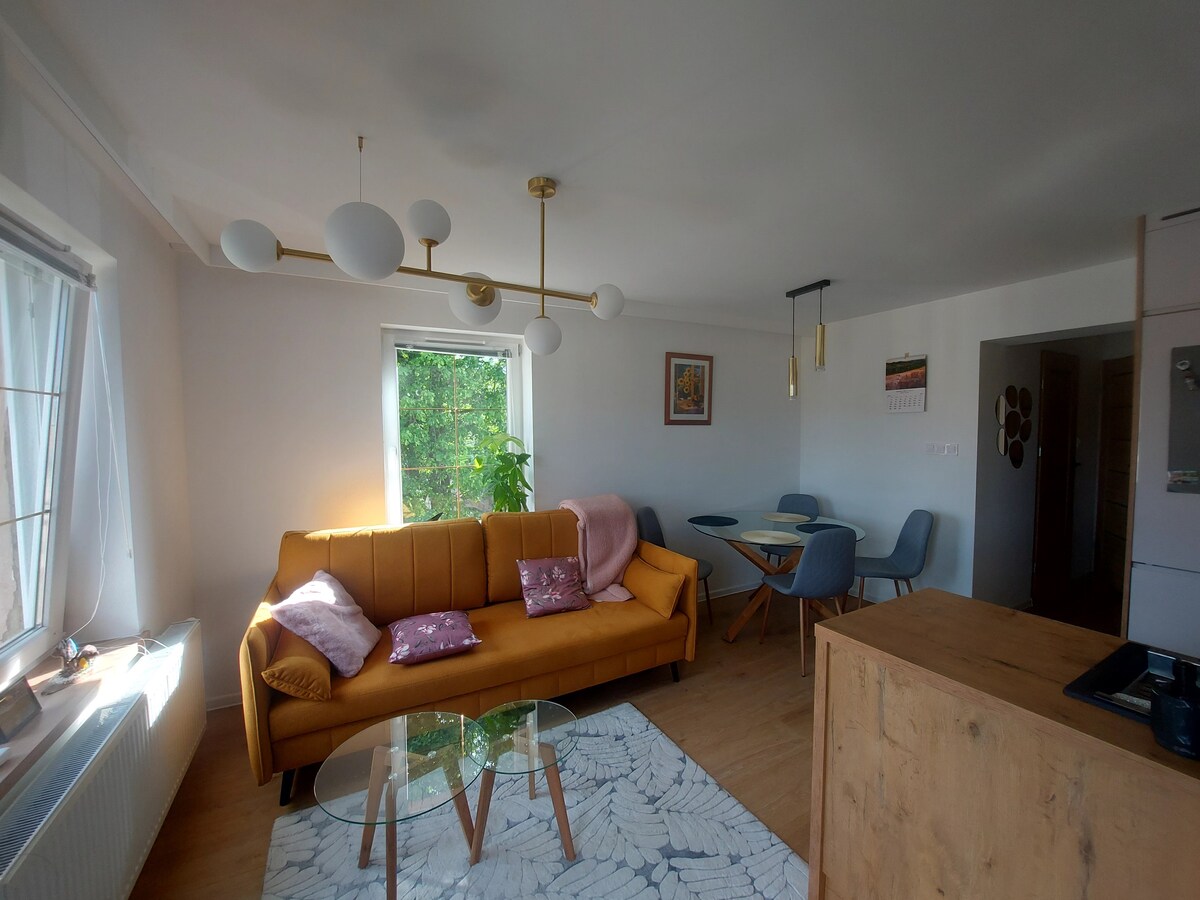 Cosy and fully equipped flat in Szczawno-Zdrój, one of the most beautiful spas in Poland, located in the heart of Sudety mountains. Parking place on the property as well as on the street air conditioning and outdoor storage for bicycles, baby buggies. Living room, full kitchenette, dishwasher, coffee maker TV, wardrobe, workspace, balcony, bed, sofa. Close to Spa Park, Książ Castle, Old Mine. Check-in and check-out is done automatically by sending a message with a code. We speak English!