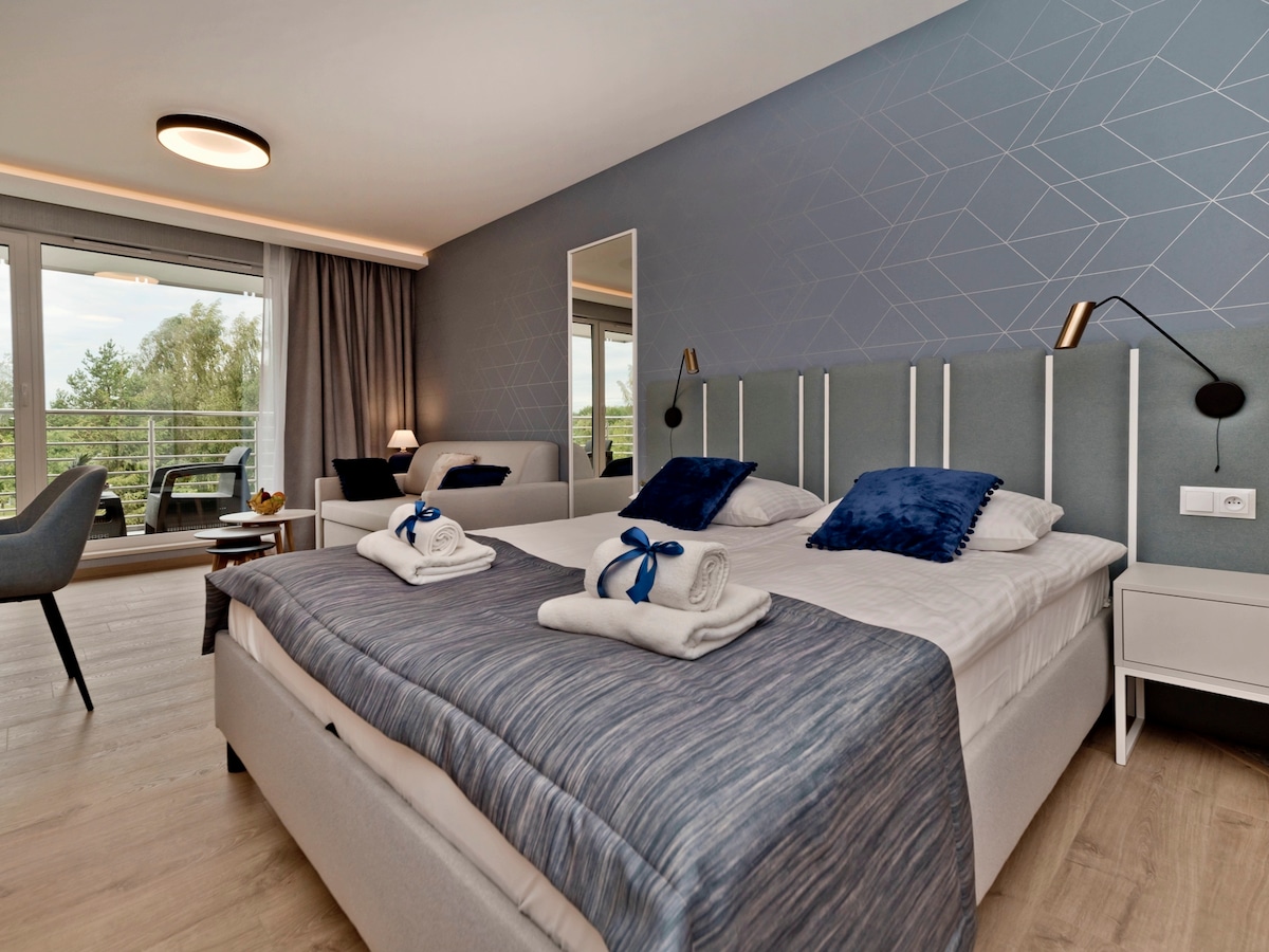 Apartament Na Klifie D2 has been fully designed and adapted for a maximum of 4 people. It consists of a living room connected to a fully equipped kitchenette and a bathroom. The sleeping option is a comfortable double bed (160x200) and a sofa bed with a sleeping function