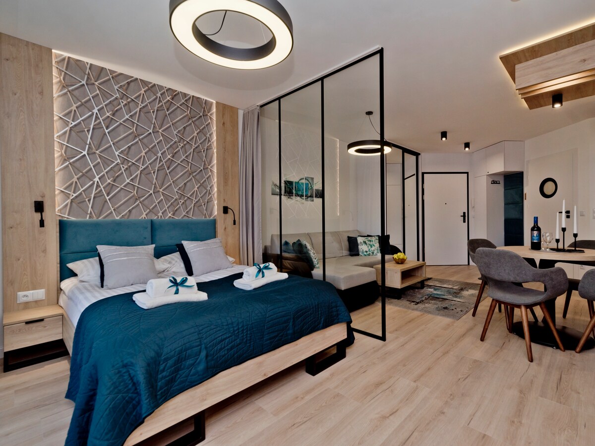 Enjoy a peaceful and stylish stay at this centrally-located place. A newly built, beautifully furnished apartment, perfect for a quiet stay in the heart of Gdańsk. Located on the greenest side of the city center, right next to Góra Gradowa. Although historical and cultural sights, shops, and restaurants are only a 10-15 min walk away, the area feels peaceful and secluded. The place offers a unique, cozy, and very comfortable design, perfect for a couple and a weekend escape.