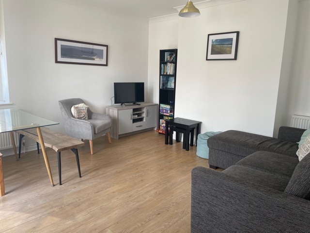 A fantastic seaside-themed ground floor apartment, newly refurbished. All within a short stroll to the beach & town. 🏖Friendly dogs welcome - no charge 🏖Dedicated workspace with WiFi 🏖Free parking 🏖EV Charger (type 2) 🏖Outdoor space (grass area & BBQ/terrace space) 🏖Private store for surfboards etc 🏖outdoor heated shower-wash off your sandy toes/dogs/wetsuits. 🏖Sleeps 6 (1 double, 2 singles & sofabed. Bedding Included, no towels) 🏖55 inch TV & wifi (Disney,Netflix,prime included)