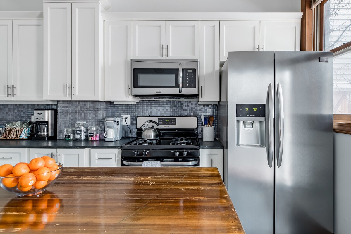 The Wrigley Home is a newly renovated 2-bedroom with spacious living room & dining room. Ideal location for groups & families as this family-friendly neighborhood is walking distance to train stops (Addison- Red Line & Southport- Brown Line), retail shops, bars, restaurants, parks, and more! You will feel like home with a large sofa, fireplace, dining room table, brand new kitchen appliances, the amenities of home, pack and play, high chair, stroller, toys, backyard for grilling, etc.