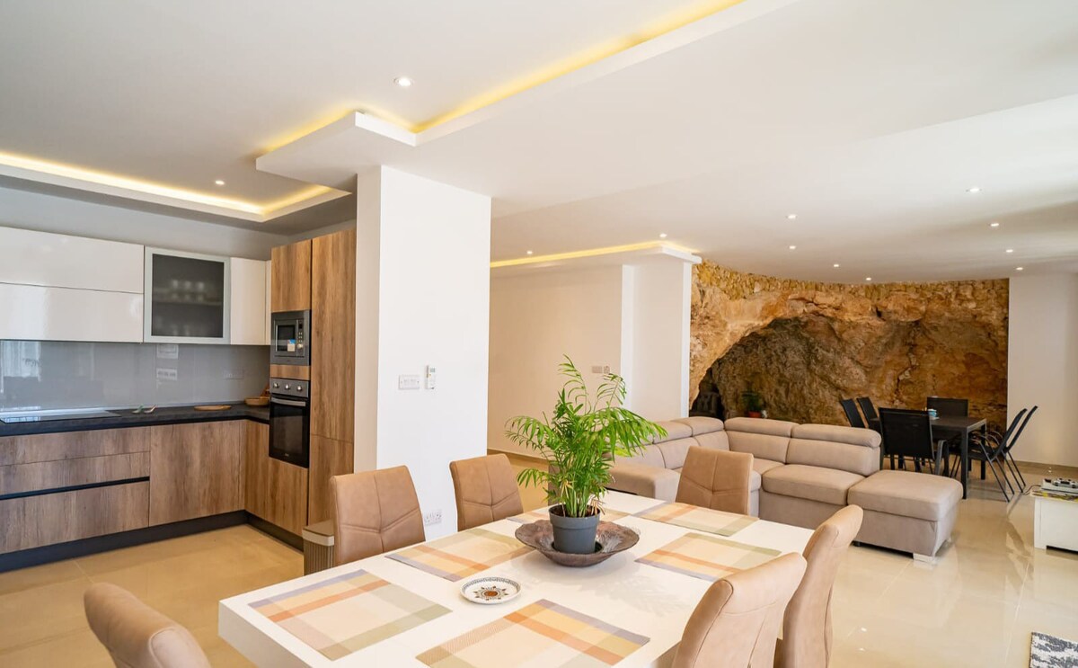 Experience a one-of-a-kind living opportunity with exceptional apartment. Featuring three bedrooms, each with an en-suite. The highlight is a unique living room set within a cave, creating a cosy, inviting space. An open-plan kitchen and dining area, along with modern amenities, make it perfect accomodation. Outside, a private pool with stunning valley views and hot tub provide an ideal setting for relaxation. This apartment combines natural beauty with modern living.