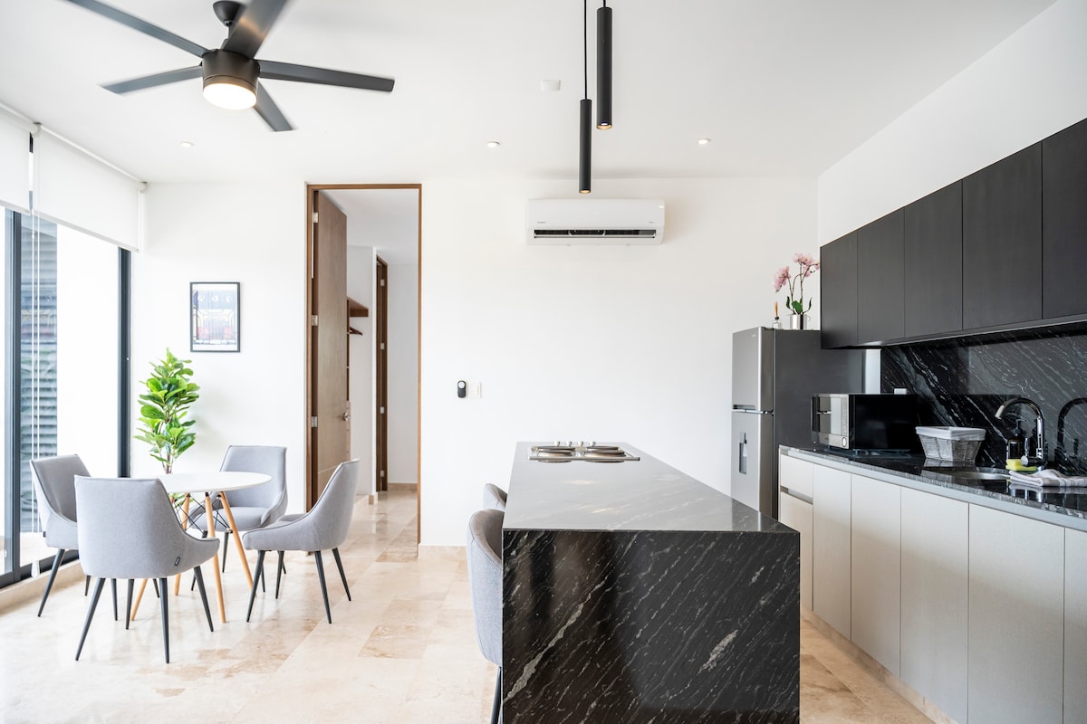 Modern 2-bedroom apartment | Terrace + Temozón Pool