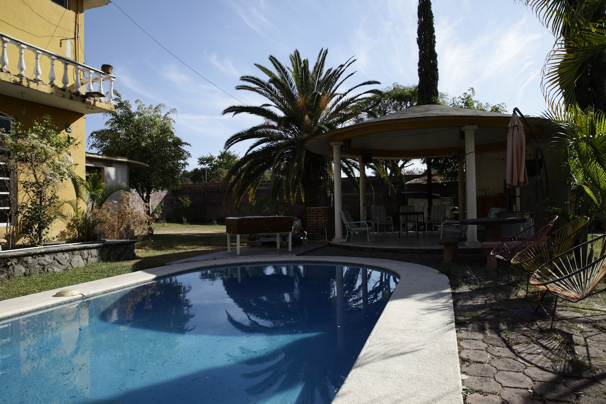 Charming private house to rest. Located in a very quiet neighborhood away from the hustle and bustle of the city, and even on the way you will find fields of roses, corn, and cane. The house has a garden with a swimming pool, barbecue and fire pit (not shared) so you can spend a few days with your family. It has a fire pit to warm up on starry nights in the garden. You can visit nearby, Jardines de México, Pueblos bonitos, Hacienda de Chiconcuac, Xochitepec, Xochicalco ruins, etc.