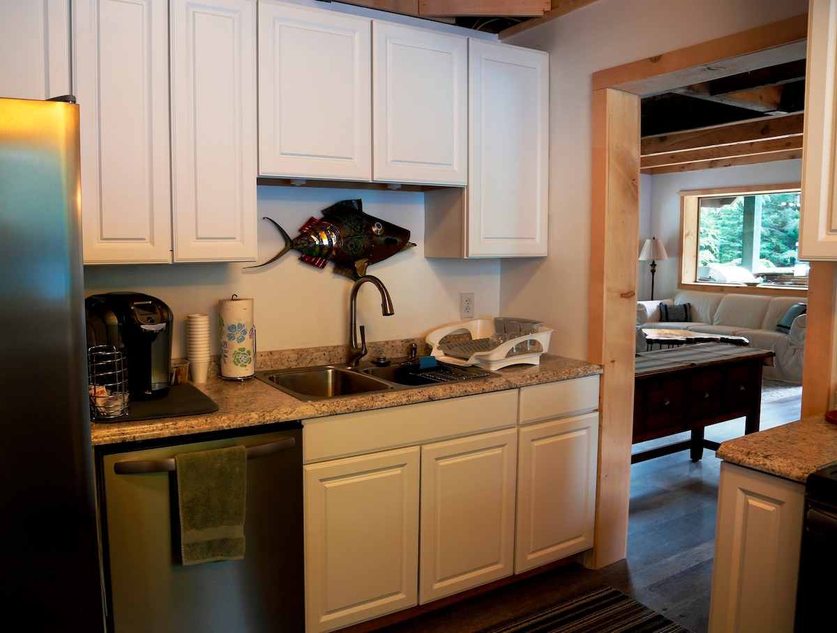 The cabin sits on a quiet forested lot with plenty of space to process your fish and barbecue. With a roomy living area, fully equipped kitchen, and two comfortable bedrooms guests will enjoy relaxing with friends and family. Please be advised local taxes of 13% are not included in pricing.