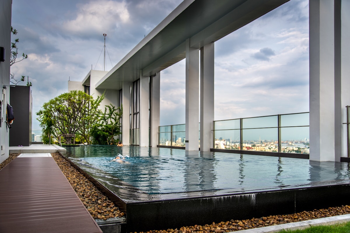 曼谷素坤逸Loft奢华公寓/高层落地窗/泳池/BTS On Nut站/屋顶酒吧