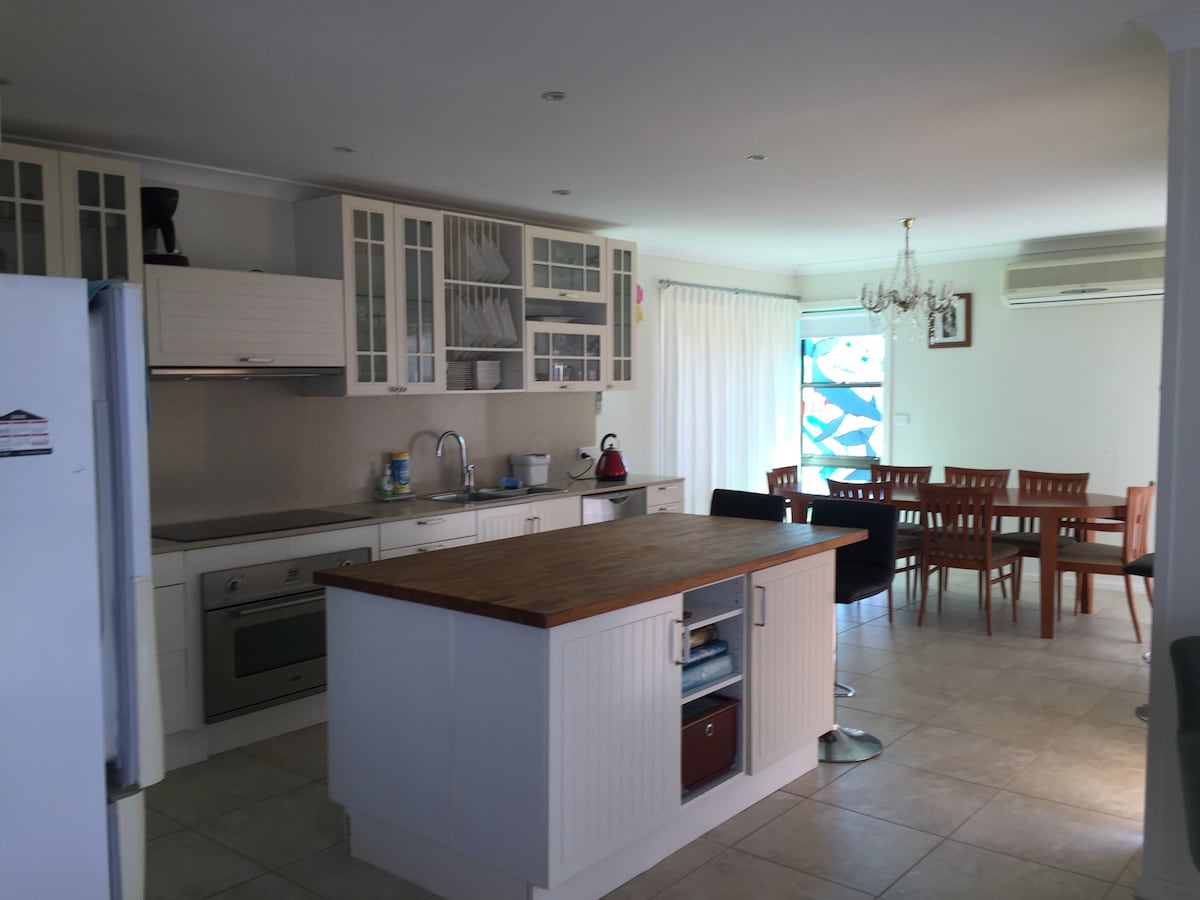 Nestled on a peninsula between Deep Creek and Pacific Ocean , On the mid north coast of NSW .Our tranquil garden overlooks the estuary with water frontage Hyland Park has 430 residents, and we are midway between Sydney and Brisbane, 6min off the freeway. For breakfast I’ve stocked the unit with bread, butter, jam, milk, cereals, yoghurt, juice,tea, herbal tea,coffee and hot chocolate. Enjoy kayaking from your doorstep, walk to the beach, fishing, mud crabbing, and paddle boarding,surf