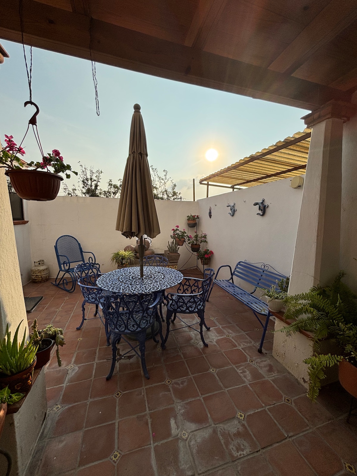 Located in historic downtown Guanajuato, experience a wonderful stay in a comfortable and charming apartment. Little garden with year round fruit bearing lime tree. Ecologically minded, solar water heaters and a cistern for rain water. Terrace with stunning views, daybed and hammock. Just minutes from the University of G, Plaza del Baratillo, Teatro Juarez and Jardín Union. A rarity in Guanajuato - air-conditioned bedrooms! Guests must be comfortable walking, uphill walk and stairs!