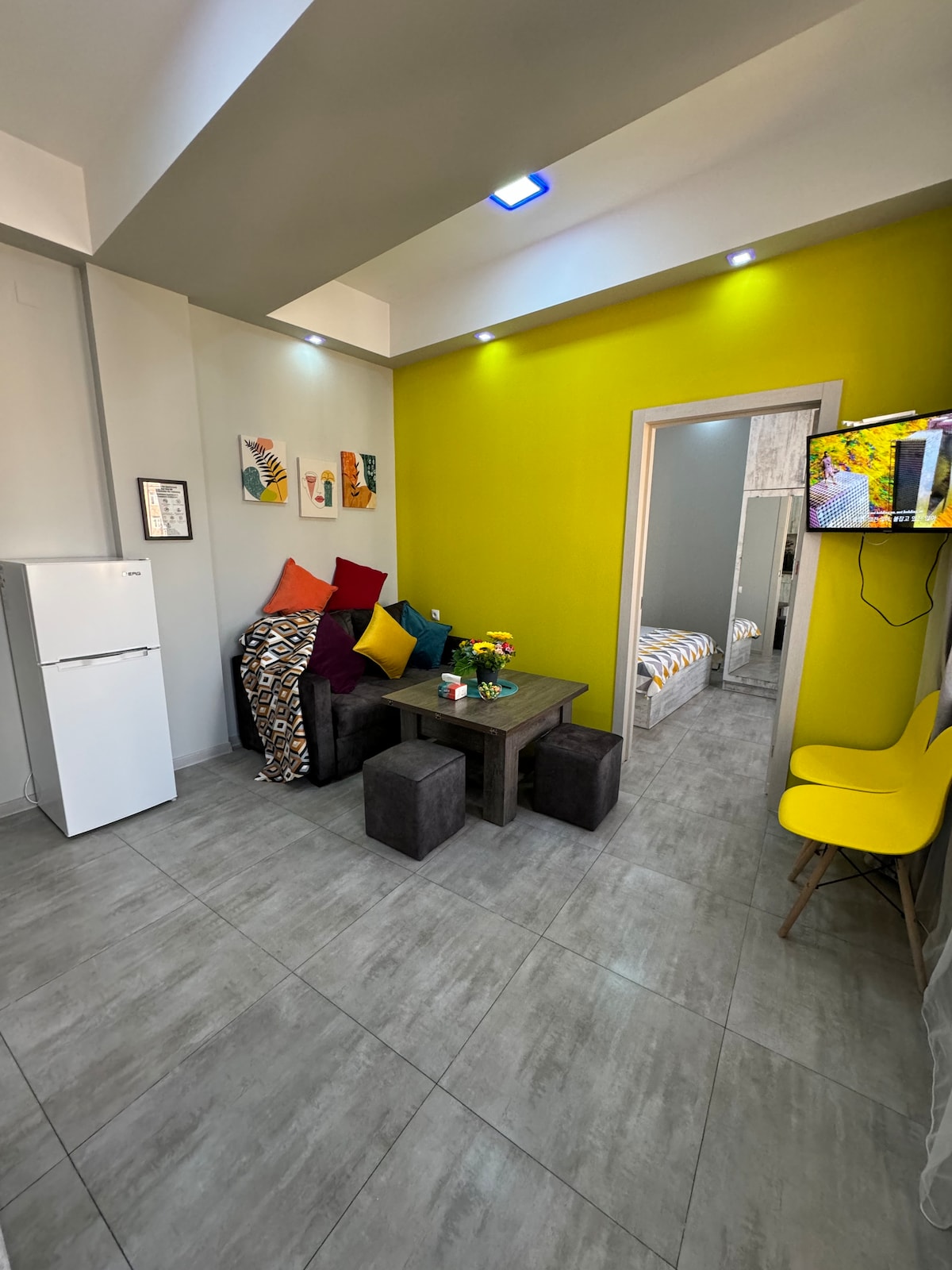 Welcome to your cozy and bright apartment in the heart of Yerevan. This modern retreat has a unique open-plan layout where the second sleeping area is harmoniously integrated, creating a perfectly spacious and connected space. The kitchen is equipped.The living room has a comfortable sofa and a large TV and fast WiFi. The bedroom is equipped. You will be located near landmarks such as Republic Square and Northern Avenue. The apartment is fully furnished. We look forward to seeing you in Yerevan.