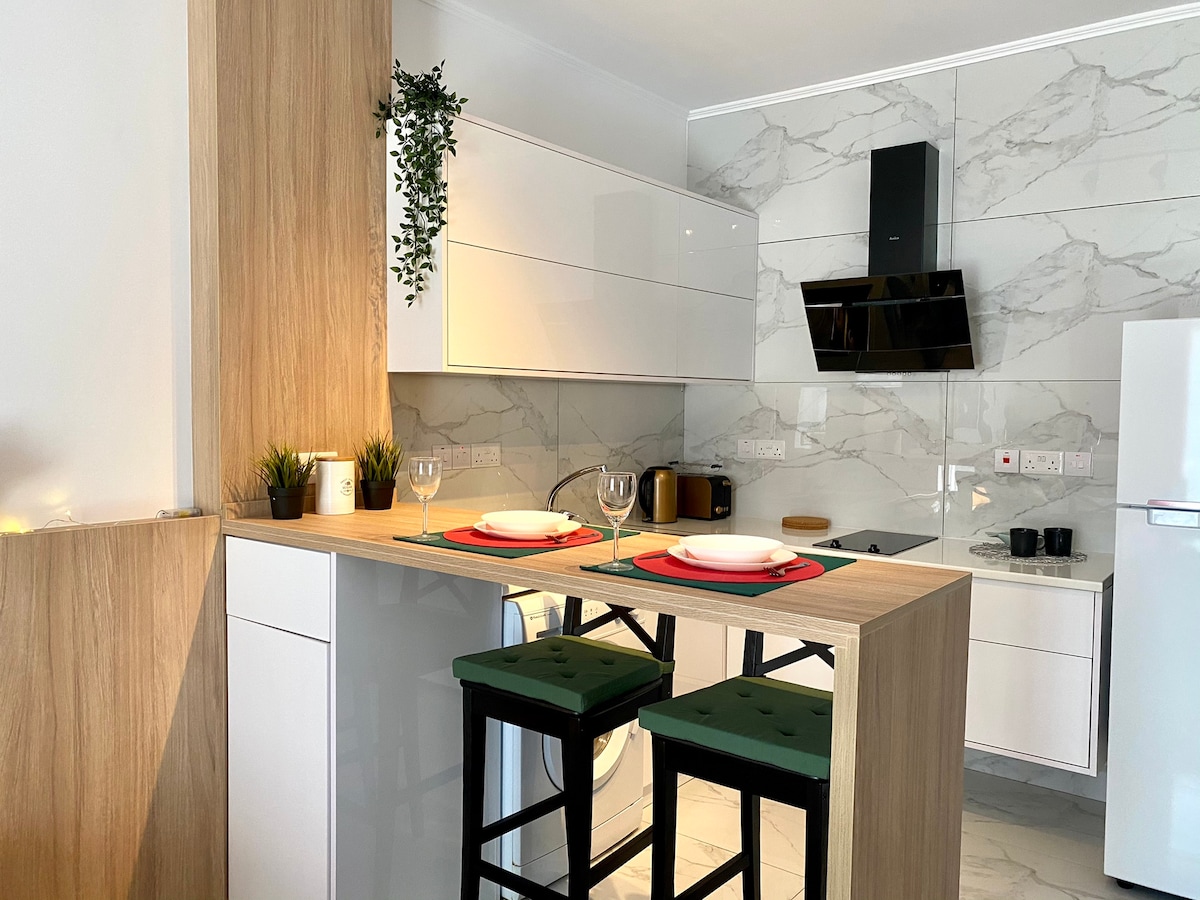 The 2 bedroom apartment was renovated in February 2022. It has all the latest amenities, it's cosy, big, comfortable and has beautiful style. The kitchen has everything you need like hobs, mini oven, cookery essentials. It's very close to many hotels in Kato Paphos and to many archeological museums. Private parking is just outside of entrance door. Huge supermarket is opposite from the apartment. 3 minutes walking to the sea and 8 minutes walk to the old harbor and old castle.