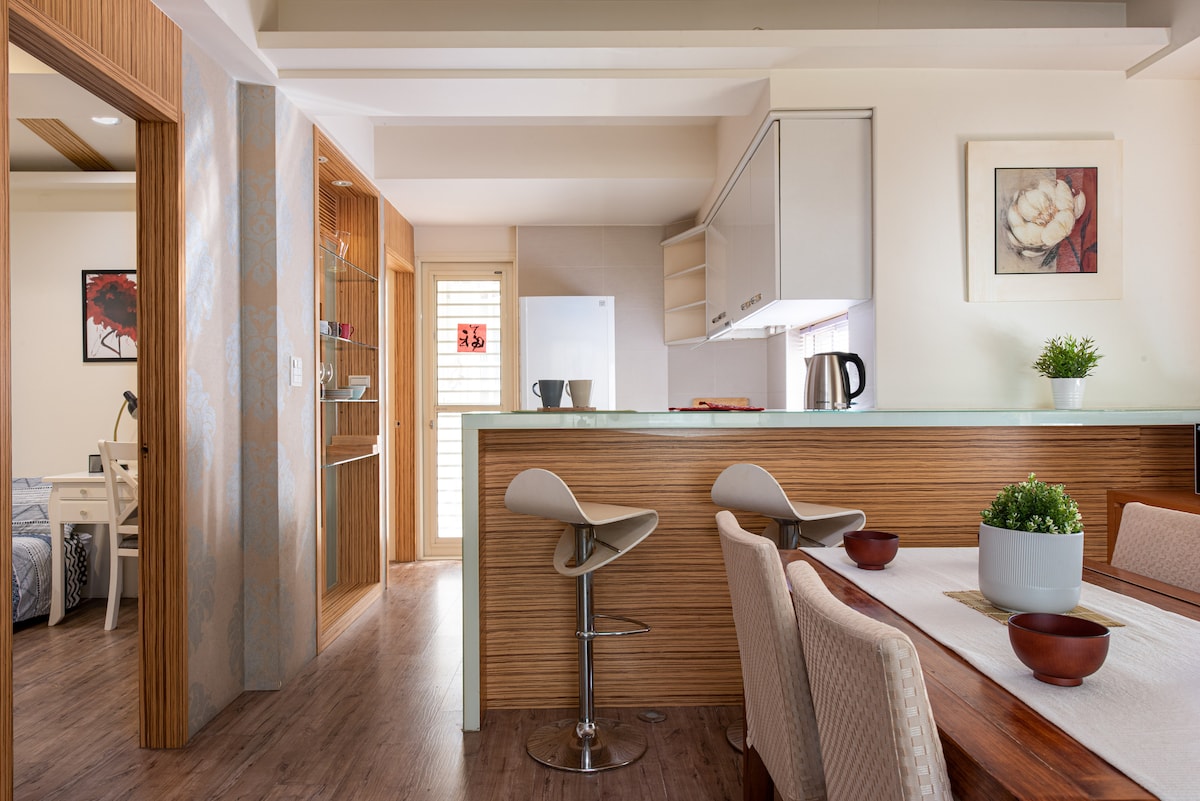 Located in the lively and convenient Guting MRT, you can walk to the famous "Shida Night Market" business district, delicious Taiwanese snacks, trendy cafes, etc.; you can also walk to the Riverside Park and stroll in the green park for exercise! Perfect location away from the hustle and bustle of the concrete city of Taipei! MRT: Green Line, Yellow Line Located in the center of an important transport hub in Taipei 10-15 min walk to Taoyuan Airport Line "Guting Station" Very easy to get to any of Taipei's top attractions Number of guests: 4 The house is rich in design space, a luxury elevator building, you don't have to worry about luggage handling, comfortable and luxurious furnishings, creating a comfortable Korean-style quality home for you, one bedroom, one living room, one dining room, one bathroom. The living room offers a sofa double spring bed, a standard double bed in the room for four adults; while entertaining, the room can close the door without disturbing the quality of sleep; free high-speed internet speed for your business use, as well as Disney+ movies and hundreds of TV shows to watch, giving you a comfortable and convenient living environment and a luxury residential building, with building security, giving you safe and high-quality accommodation. Important information: - Luggage storage is not available, you can store your luggage at Guting MRT "Guting Station"! (Airport Express)