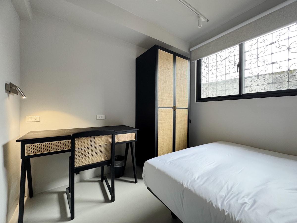Hi, I'm the most life-friendly Airbnb in Gongguan! // Located in the lively Gongguan business district, MRT, bus, food are all within walking distance, super convenient for living. // The room is bright and has a comfortable queen-sized bed and desk, making it an ideal base for travelers and business travelers. // Free Wi-Fi, air conditioning, water heater and basic amenities are all available to make your stay easy and stress-free. // There is a campus of National Taiwan University and Wenluoting Bookstore Street nearby, with a strong cultural atmosphere, suitable for walking and relaxing. // Whether you are staying for a short or long stay, you can feel the warmth and comfort of "home" here. This is a flat on the second floor, you need to take stairs.