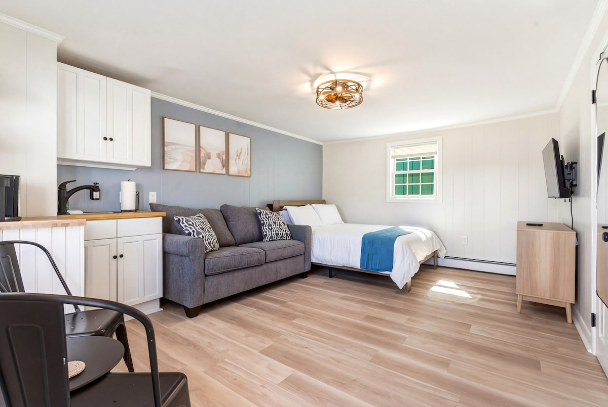 Welcome to The Bracy Suite, a cozy private room perched on the third floor of the historic Ipswich Inn. This room is newly furnished with a comfortable queen bed and a cozy cottage theme to make you feel right at home. Your room includes an ensuite bath with local boutique amenities and Smart TV with Youtube TV (150+ channels!). Smartlock ensures an easy self-check in process. Enjoy easy walkability to downtown Ipswich shops, restaurants, and cafes and a short drive to beautiful Crane's Beach!