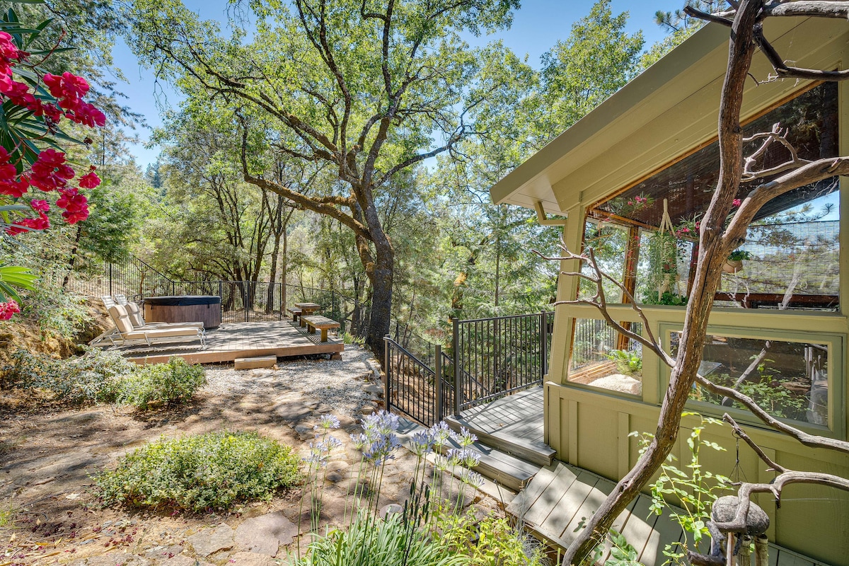Come and soak under the pines. Our amazing retreat is ideally located less than one mile from downtown Grass Valley and four miles from historic Nevada City. This cozy retreat offers a private outdoor hot tub under the pines, and an outdoor BBQ and dining area. Enjoy wine tasting, taprooms, art galleries, boutiques, and great restaurants. Outdoor lovers will find endless adventures: swimming or fishing in the Yuba River, exploring nearby lakes, or wandering through charming downtown streets.