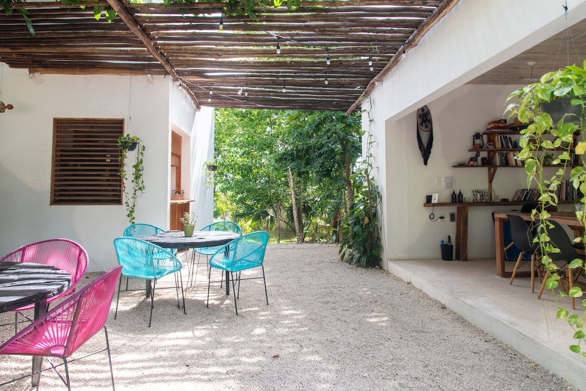 The magic of our Private Villas with Private Pools in the middle of the jungle will captivate your senses and immerse you in a pleasant journey. Surrounded by the beauty that nature offers, your days will be painted in their colors and the sounds of birds, all this in a beautiful boho environment, full of style, comfort and privacy, just 5 minutes driving from Tulum´s town and 15 minutes from its aquamarine coasline