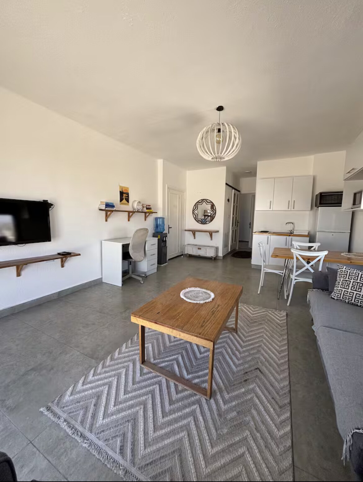 Modern luxury in the heart of Amman. This spacious 3-bedroom, 2.5-bathroom apartment accommodates up to 8 guests with sleek marble floors, LED lighting, and a stylish open living area. Highlights include a custom German kitchen with premium appliances, in-unit washer/dryer, and a private balcony with seating for five and a swing. With air conditioning in every room and high-speed WiFi, it’s the perfect stay for families, business travelers, or groups seeking comfort and style.