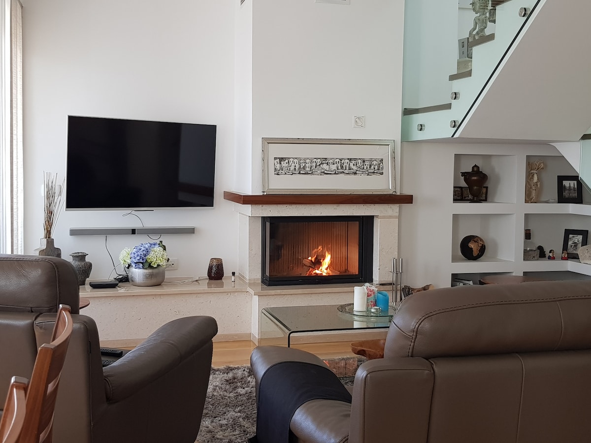 GT is spacious top floor apartment, with 2 private rooftop terraces, featuring outdoor Jacuzzi. There are 2 en suite bedrooms, kitchen,dinning/living area with a fireplace. Second floor features a study/office room which opens to two rooftop patios, one for lounging and enjoying the Jacuzzi, while the other has an outdoor kitchen with a traditional wood burning grill and an outdoor dinning area.