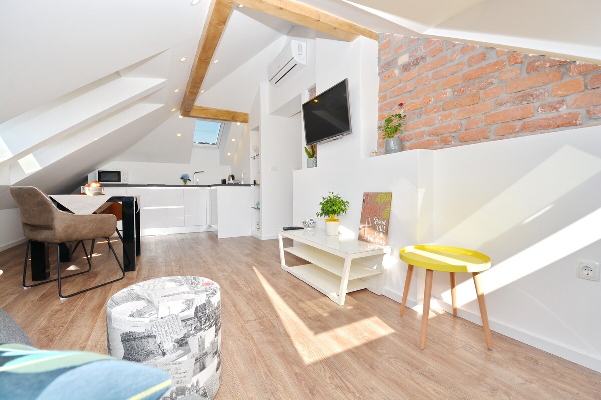 Luxury Apartment Alma Loft is located in the heart of the city center of Zadar where you can hear its beat and feel the great history of this beautiful city. The apartment is air-conditioned and features a flat-screen TV, a living room with a sofa, a well-equipped kitchen with a dining area and a private bathroom with a shower, bathrobes and a hairdryer. There is also a dishwasher, microwave, refrigerator, electric kettle and a coffee maker.