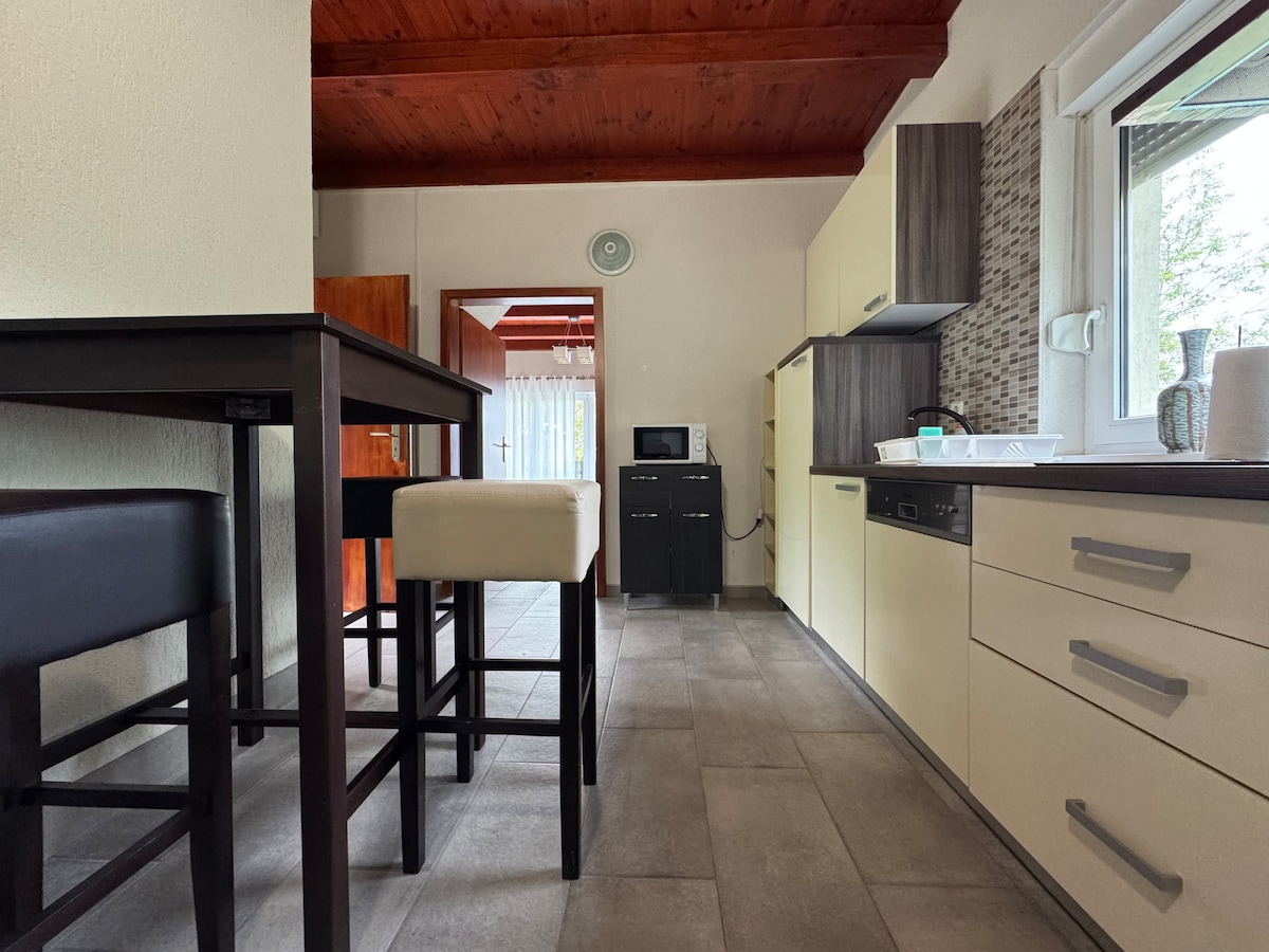 The whole family will feel good in this peaceful 2-bedroom apartment house close to Lake Balaton, only 300 meters from the lake, where a cozy quiet small beach awaits. The center is a 10-15 minute walk away, there are many restaurants and entertainment options, garden cinema... The apartment has 2 separate bedrooms with 2 beds. You can enjoy the tranquility on the terrace. Swing, sandbox, grill, cauldron option. free WIFI non-stop, parking in a closed yard.