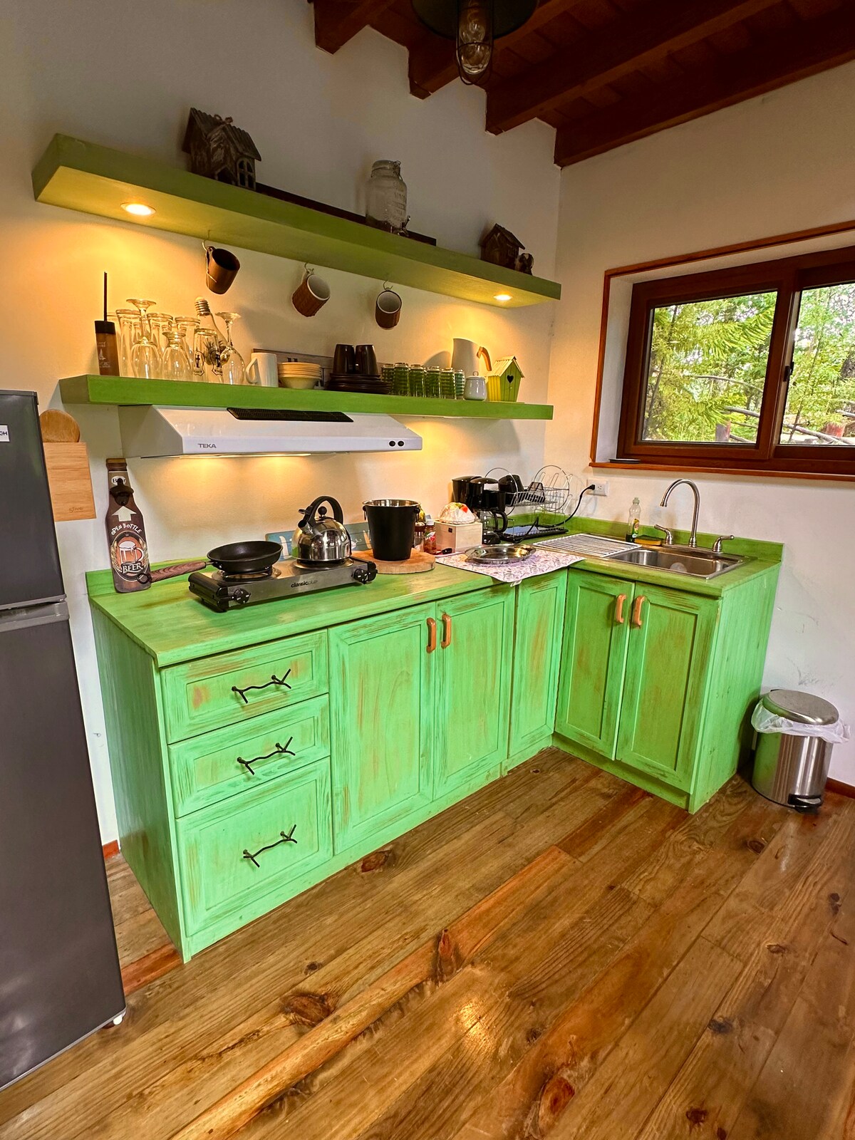 Cozy compact-size cabin (tiny cabin style), designed for an intimate and functional experience for two people. Ideal for couples who value nature, silence, forest surroundings, and nights by the fireplace—rather than large spaces or hotel-style services. Just 20 minutes from Antigua and 5 minutes from local restaurants, with access to hiking and cycling trails. Perfect for relaxing as a couple, traveling solo, or working remotely in a peaceful setting. ·Disconnect to reconnect·
