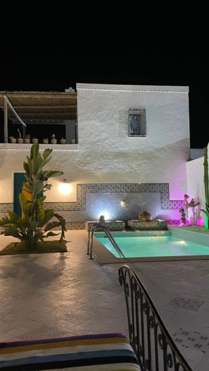 This accommodation has a resolutely unique style. A beautiful traditional house a few meters from the sea, with a beautiful pool and the best fish restaurant in the city, for all those looking for the tranquility and beauty of the sunrise and sunset. It is 30 km from the island of dreams Djerba, and 20 km from the city of Zarzis