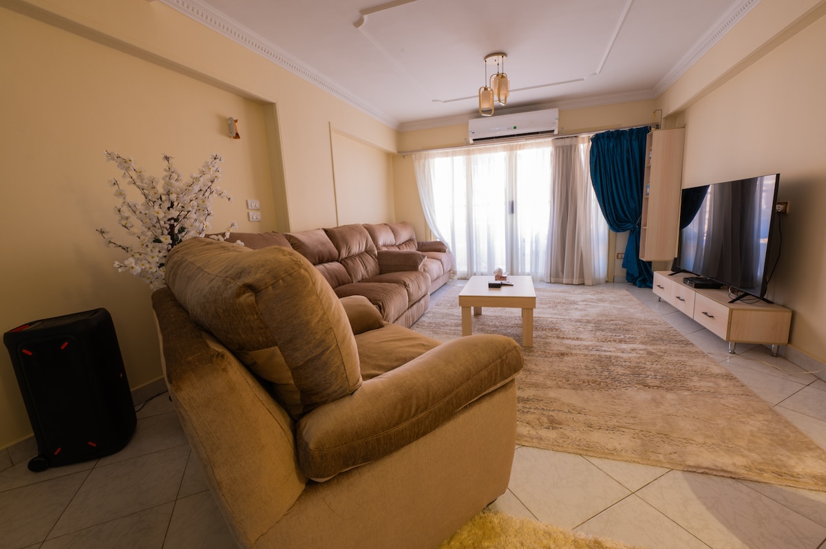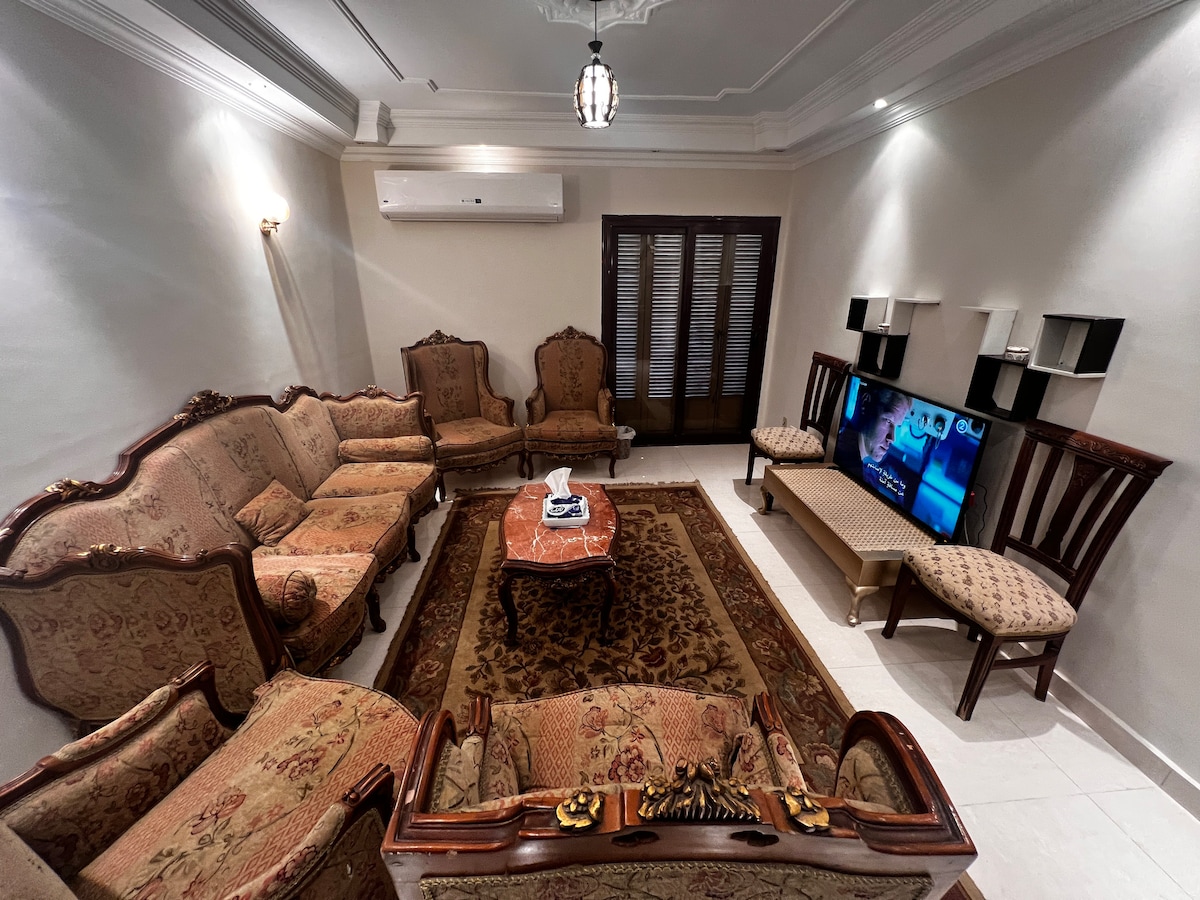 Stay in a beautifully renovated apartment located in the center of Heliopolis—one of Cairo's oldest and most charming neighborhoods, You’ll be just steps away from local restaurants, banks, and currency exchange . Major shopping malls are a quick 10-minute drive, and Carrefour is only 5 minutes away . The apartment is 15 minutes from Cairo Airport and about 20 minutes from the Old City. the apartment is renovated and furnished to a high standard, air condition is in all the rooms .