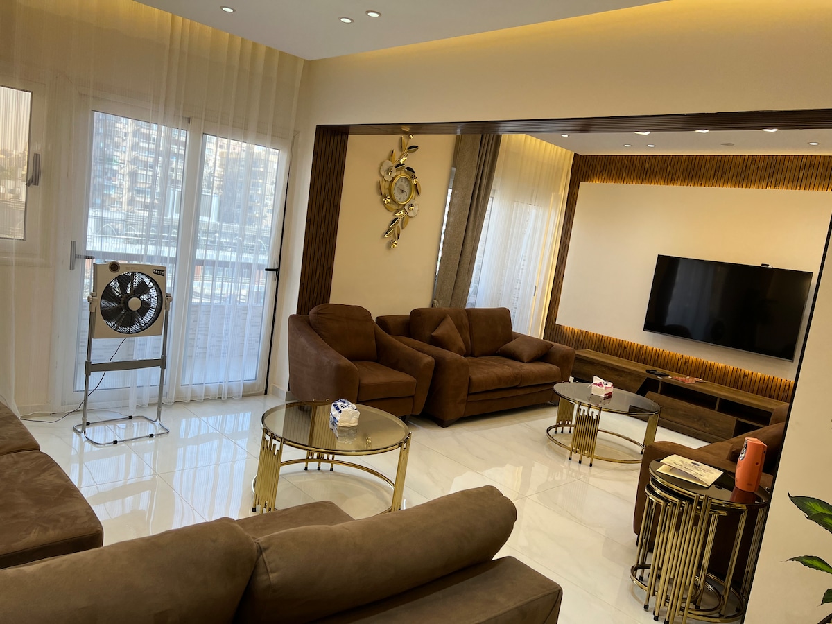 A luxurious apartment in the heart of Heliopolis, Cairo. Just 16 minutes from Cairo Airport. The residence features 2 bedrooms, 1 spacious salon, 1 living, 3 balconies, 1 bathroom, and a fully equipped kitchen. Its prime location places you just 2 minutes from Starbucks, 4 minutes from Merryland Garden, and 3 minutes from a major supermarket. The building has 2 elevators and offers 24/7 security, though ideal for families. Amenities include Netflix, multi-gym, and cleaning service if required.