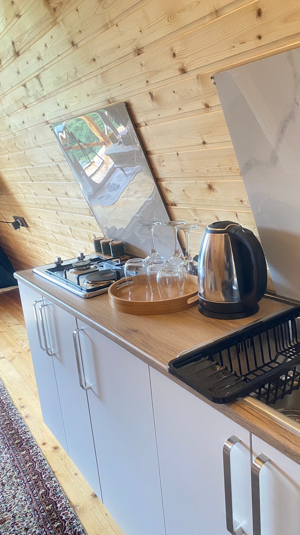 The cottage has a sauna which costs an additional fee. One hour costs 100 GEL. Mirveti waterfall is a few kilometers from Thomas hut. Mosque is one kilometer away. Machakhela river is also nearby. Makhuntseti waterfall is 20 kilometers away. We also have house wine, red and white. Aged for 3-4 years. Which you can buy on site.