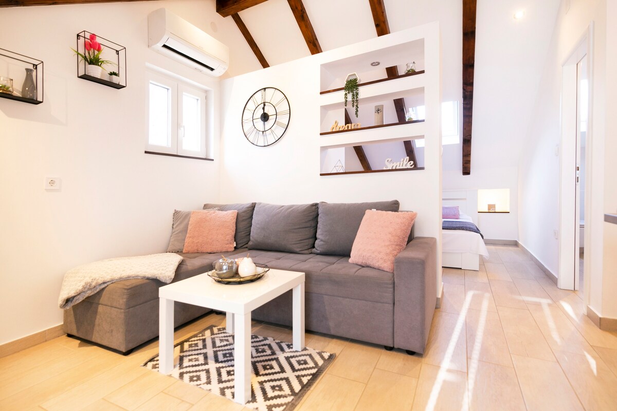 Just a few steps from the sea and the beach, there is a ‘Porpini’ apartment. From the small terrace you can enjoy the wide view across the sea, while sunbathing, listening to the soothing sound of the waves or simply relax, in the shade, with the glass of a cool drink. This small and cosy studio apartment has everything you need for your vacation. Equipped kitchen, TV, air-condo. Apartment provides a romantic sunset on the landing at the top of stairs - for you only, and free of charge ;)