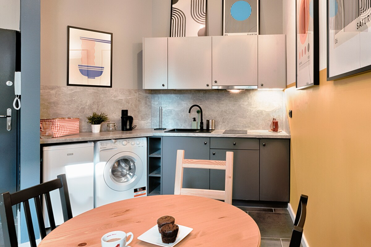 Stylowy apartament typu studio idealnie nadający się na nocleg w samym sercu Łodzi. Oddalony 1 km od ulicy Piotrkowskiej - słynnego łódzkiego deptaka. Dzięki sejfom na klucze zameldowania i wymeldowania odbywają się w prosty, samodzielny i szybki sposób. Do dyspozycji gości rozkładana kanapa oraz sypialniana antresola. Apartament znajduje się w oficynie zrewitalizowanej łódzkiej kamienicy. Posiada on w pełni wyposażoną kuchnię oraz wszelkie niezbędne środki czystości i udogodnienia.