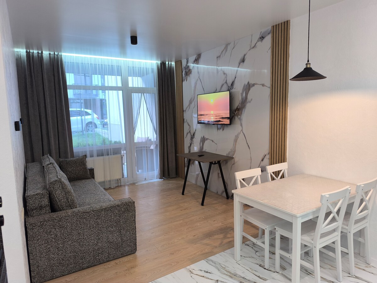 A vacation in this unique accommodation will be an unforgettable experience for you. The Greenwood-2 residential complex is considered one of the best in the center of the Bryukhovytskyi resort, thanks to the unique combination of luxurious nature and low-rise buildings. The project is based on the life of Scandinavian countries, which are at the top of happiness ratings. The philosophy is "Live! Work! Rest!"
