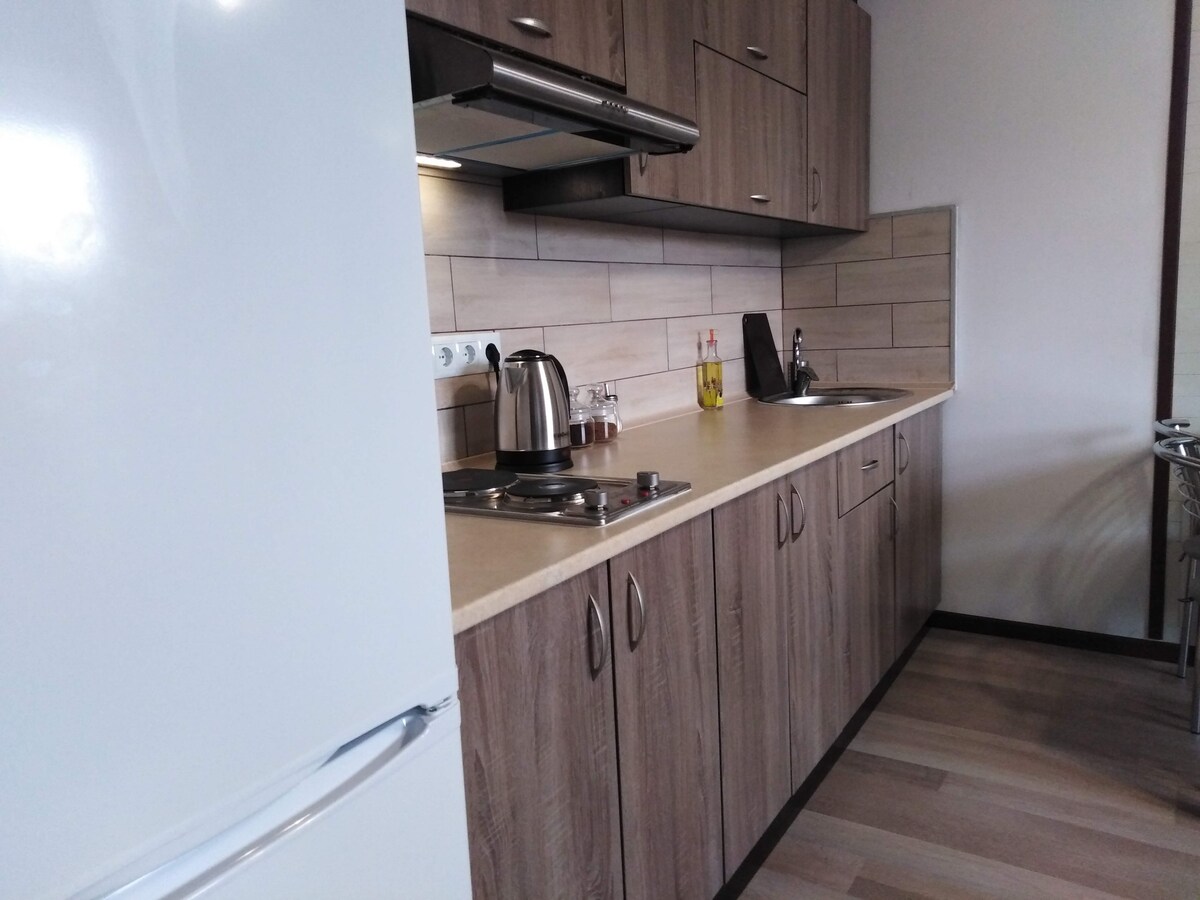 Cozy one-room apartment in the "Favorite" residential complex We offer a comfortable stay on the 10th floor with a great view of the sunset. Just a 15-minute walk to the city's largest shopping mall. The complex has a large green area for walks. The apartment has Wi-Fi, two TVs, two open balconies. Parking is available in a free and paid parking lot.