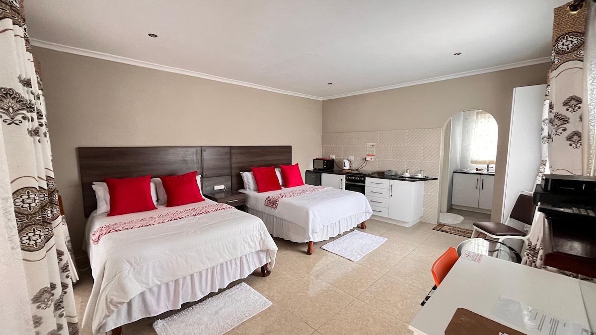 Forget your worries in this spacious and serene space located in Fourwinds . With a backup power system in case of load shedding. Free Internet WiFi Shower & bath Kitchenette with 4 plate stove (2Gas& 2 electric) with oven & microwave oven for your basic needs Gas Cylinder available ONLY on request. Dstv & open view for your Entertainment refrigerator Cutlery Kettle Cups Ironing board & steam iron