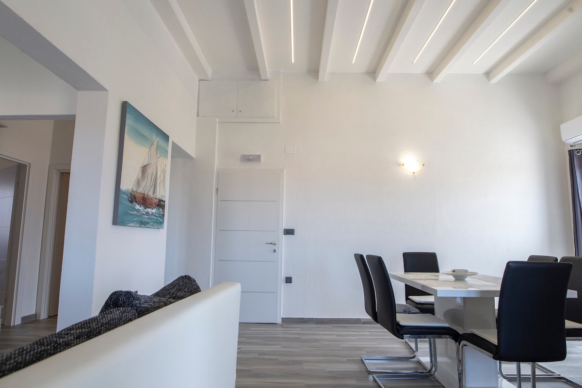 Our apartment is very comfortable and spacious, full of natural light. You can relax on the terrace and lock eyes with breath-taking sunsets. City center is only 10 minutes away by foot, while the closest pebble- stone beach is only few minutes away. It is situated on the second floor of a family house with lots of parking space in front. We try to give our guests as much privacy they need and as much help if/when they need it.