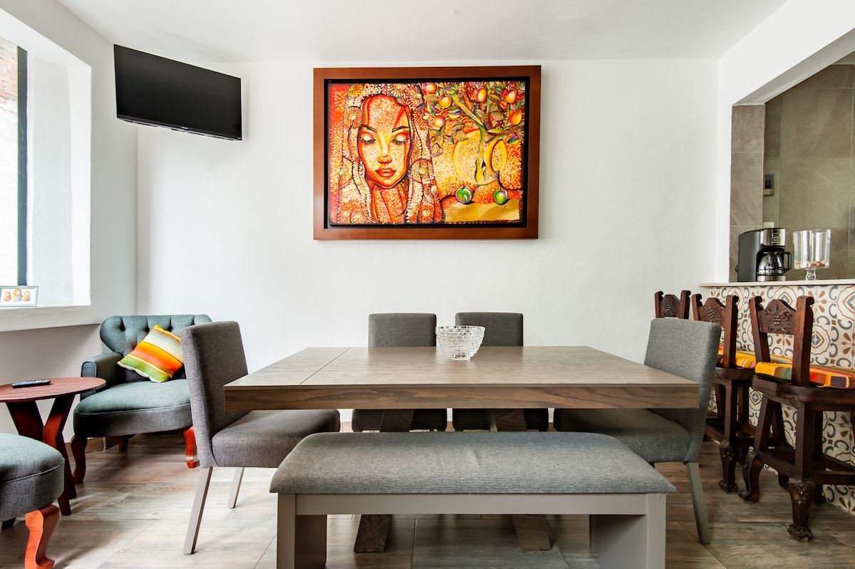 Escape to a cozy oasis in the heart of Condesa. Our private studio offers the perfect combination of comfort and convenience, with its own bathroom, terrace, and office space. Enjoy your morning coffee on the terrace as you soak in the sights and sounds of the city, or get some work done in the dedicated office space. With its central location, you'll be just steps away from some of the city's best cafes, restaurants, nightlife and parks.